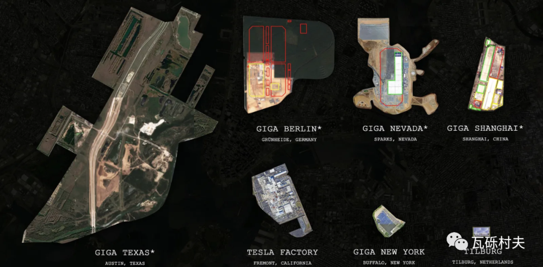 得州超级工厂和柏林/内华达/上海/纽约超级工厂的占地面积比较
