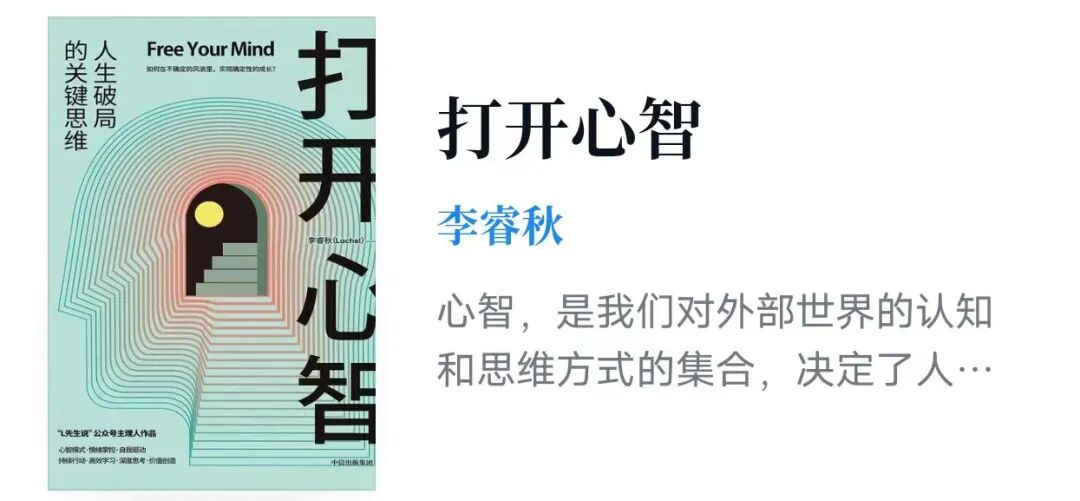 这是公众号L先生写的一本书,他在书中探索了心智的底层逻辑,为我们提供一套有效的成长系统,涵盖了情绪、自驱、行动、学习、思考、创造六个方面的提升路径,能帮我们建立更有效的思维方式。