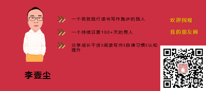你好,我是李壹尘,一个极致践行读书、写作、跑步的践人。
