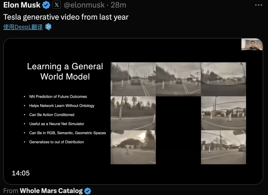特斯拉正致力于构建一种能够理解和模拟任意情境的强大通用世界模型