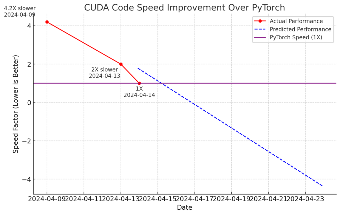 从预测来看,后续继续优化,到4月23日llm.c的训练迭代速度将是pytorch的好几倍