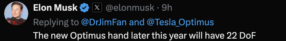 今年晚些时候,“擎天柱”的机械手将升级至22个自由度,进一步提升其操作精度和灵活性,预示着特斯拉在人形机器人技术上的不懈追求与持续创新