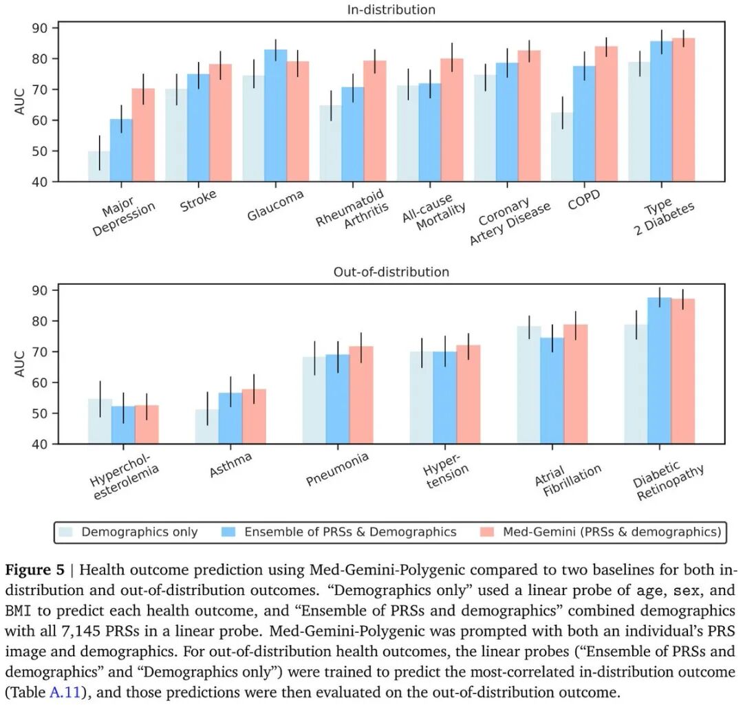 Med-Gemini-Polygenic是首个利用多基因风险评分预测健康结果的线性混合模型,它超越了传统PRS线性模型,甚至能预测出未被训练过的健康结果,展现了其在精准医疗领域的巨大潜力