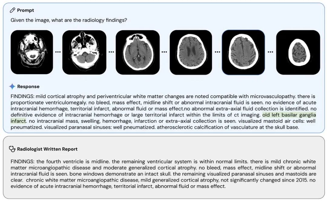 通过将Gemini视频编码器的时间轴替换为深度维度,研究人员创新性地创建了Med-Gemini-3D模型,首次实现了基于大型多模态模型的3D头部CT体积报告生成。这一技术突破对于理解复杂3D医学数据具有里程碑意义