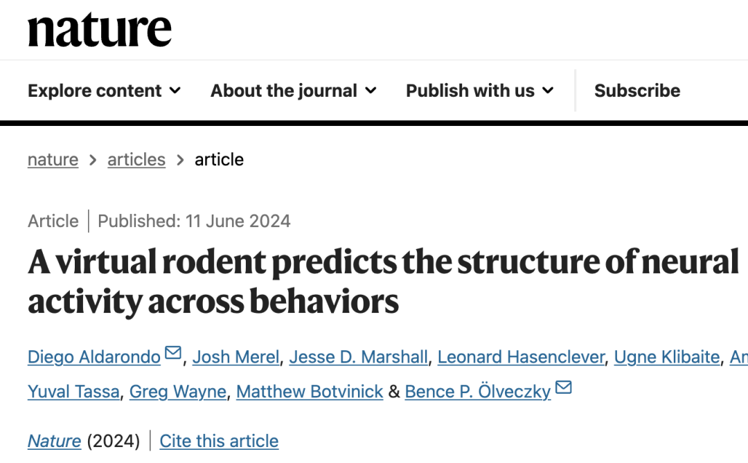 今天谷歌DeepMind联合哈佛大学发表了一篇重磅文章《虚拟啮齿动物可预测各种行为的神经活动结构》登上了Nature ,主要探讨了大脑是如何控制动物的运动行为