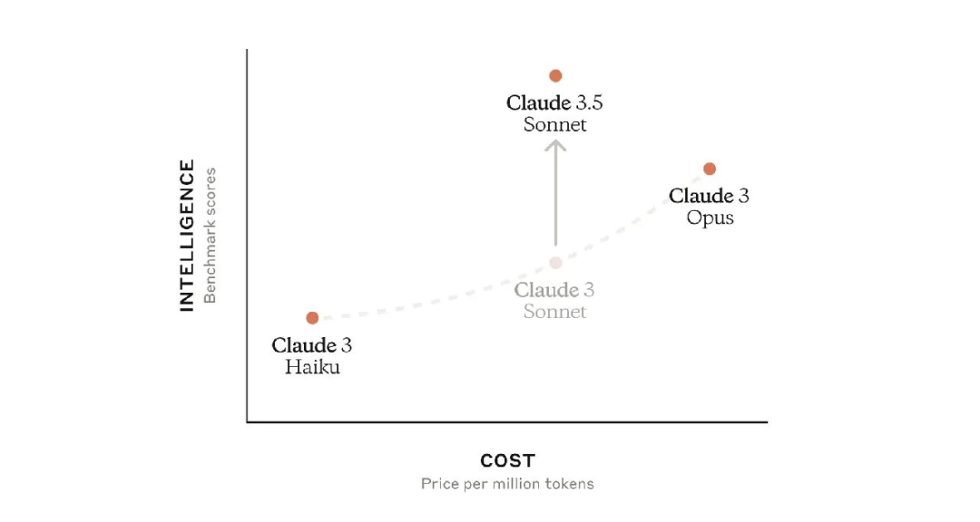 Claude 3.5 Sonnet 在主要评估指标上优于竞争对手,速度是 Claude 3 Opus 的两倍,使用成本为Opus的五分之一