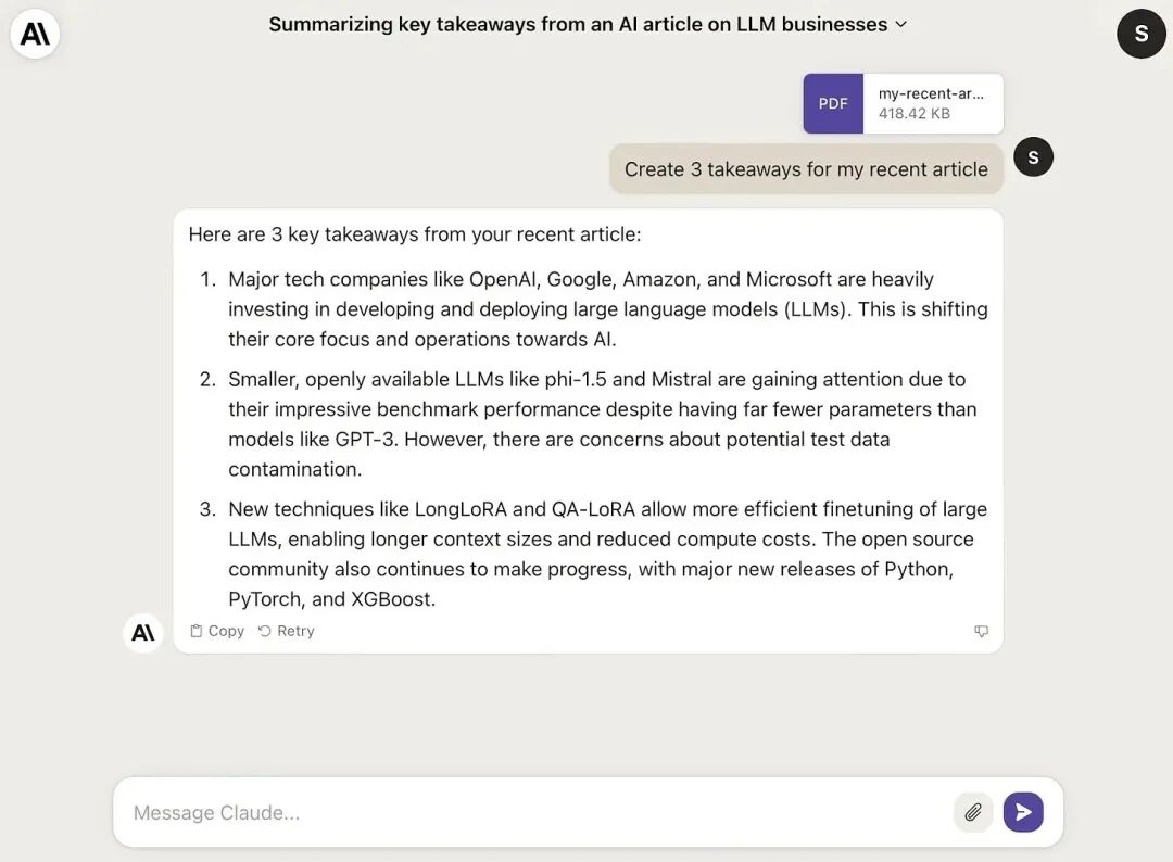 使⽤ Claude 2 ⽣成 PDF ⽂档的摘要