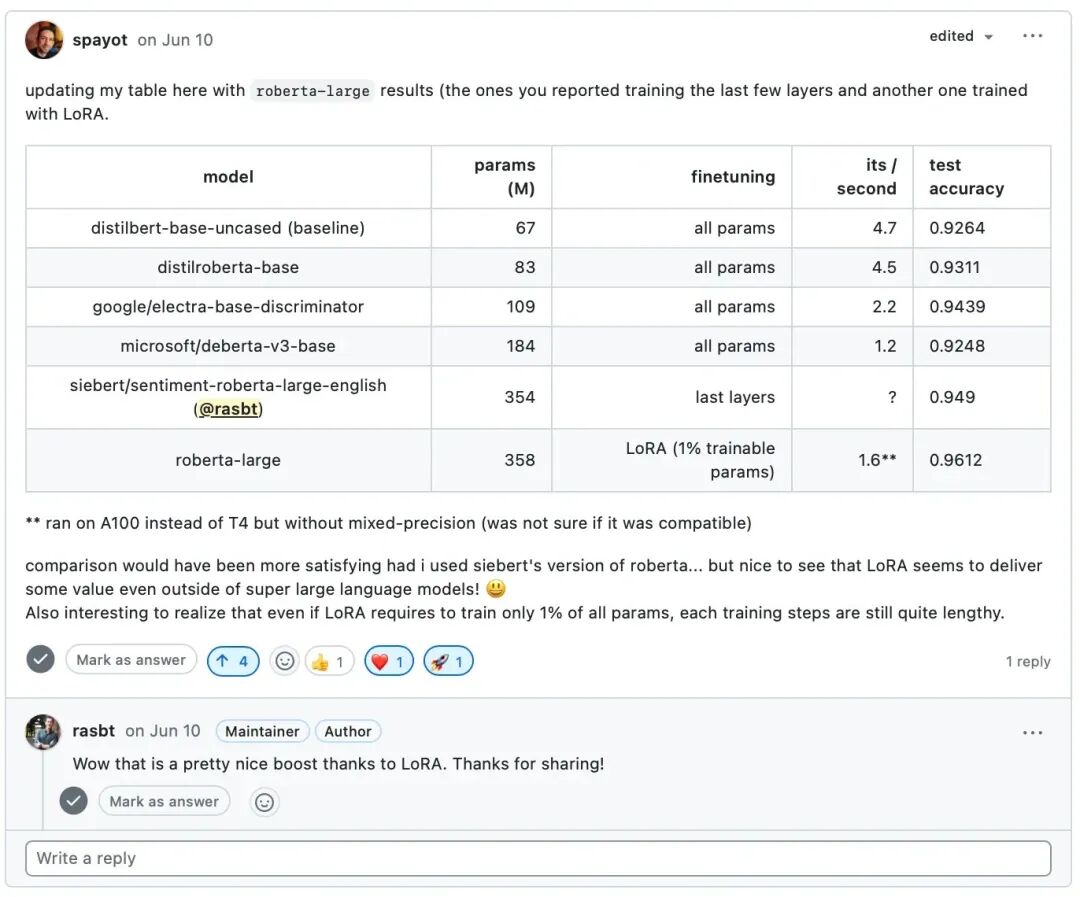 我在今年的深度学习基础课程第 8 单元中发布了使⽤⼩型LLM进⾏⽂本分类的练习, 其中 Sylvain Payot 甚⾄通过微调现成的 Roberta 模型,在 IMDB 电影评论数据集上实现了>96% 的预测准确度。(作为参考,我在该数据集上训练的最好的基于机器学习的经典词袋模型仅达到 89% 的准确率)。