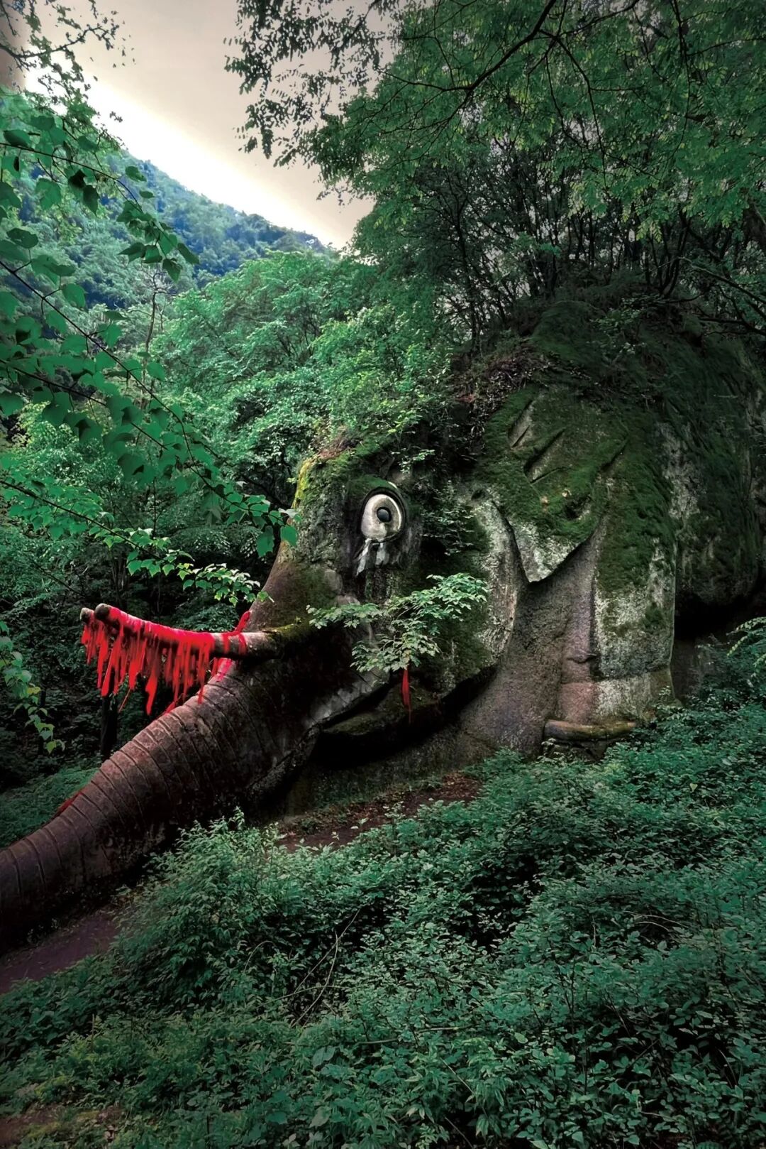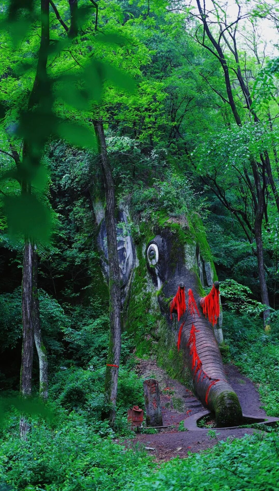离七层妖塔不远的还藏有十几米高的一座巨大石象,上面布满红色丝带,感觉应该是后人用水泥修补过,也可以顺着铁链爬到象牙中间拍照打卡!但要注意安全!不知道有啥寓意,感觉哪里不对又说不上来?