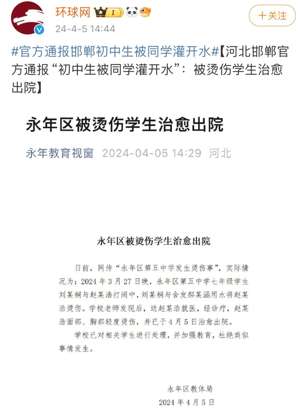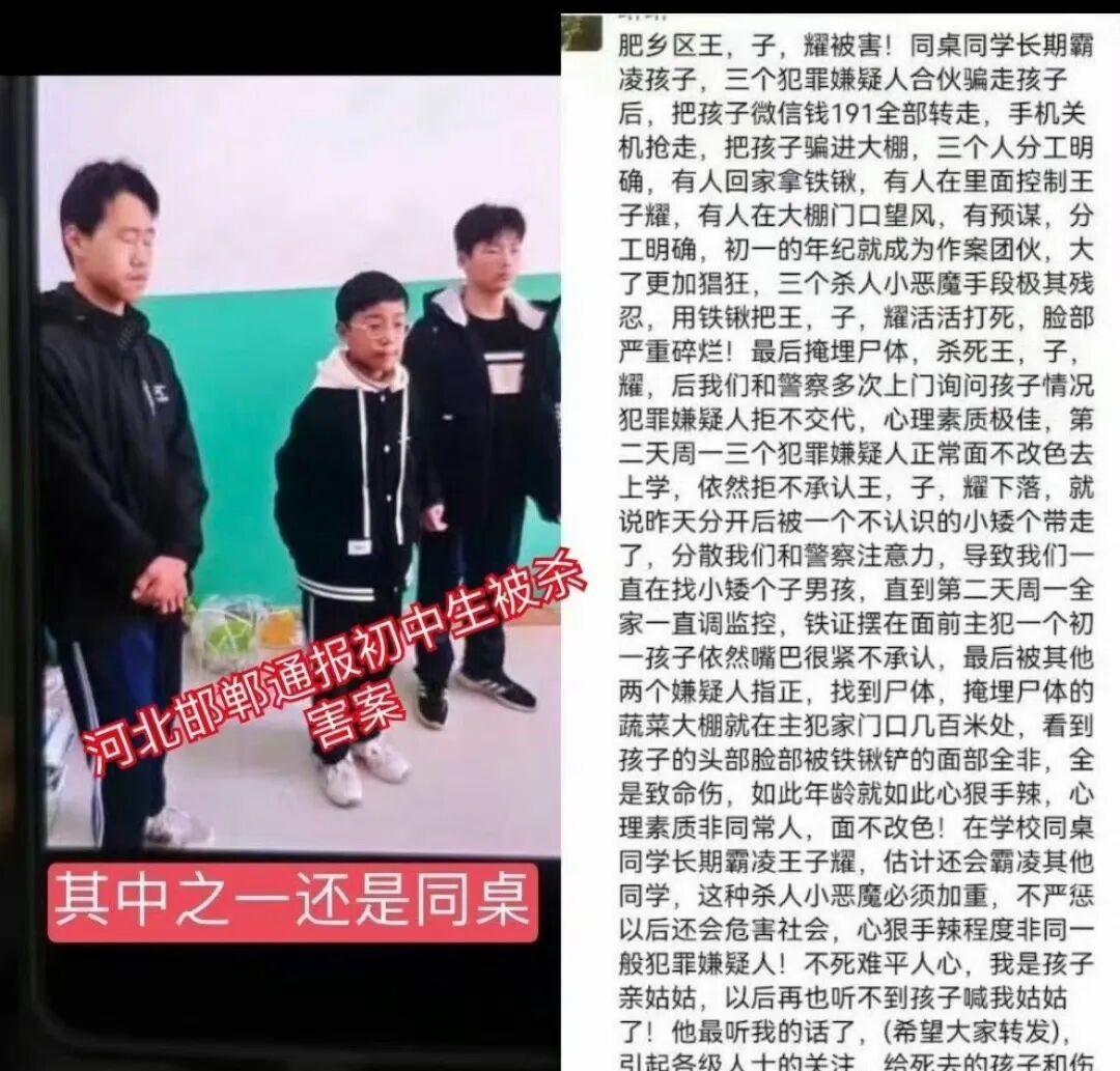 等了4个多月,邯郸初中生被害案终于要在2024年7月29日早晨8点开庭了!继续关注!话说回来邯郸这地方霸凌是真多啊!随便一搜全是炸裂新闻!咱又不是啥教育心理学专家,我就给教育局、文旅局提点建议,有认识相关领导的麻烦帮我转发一下好歹让我赚点钱(bushi