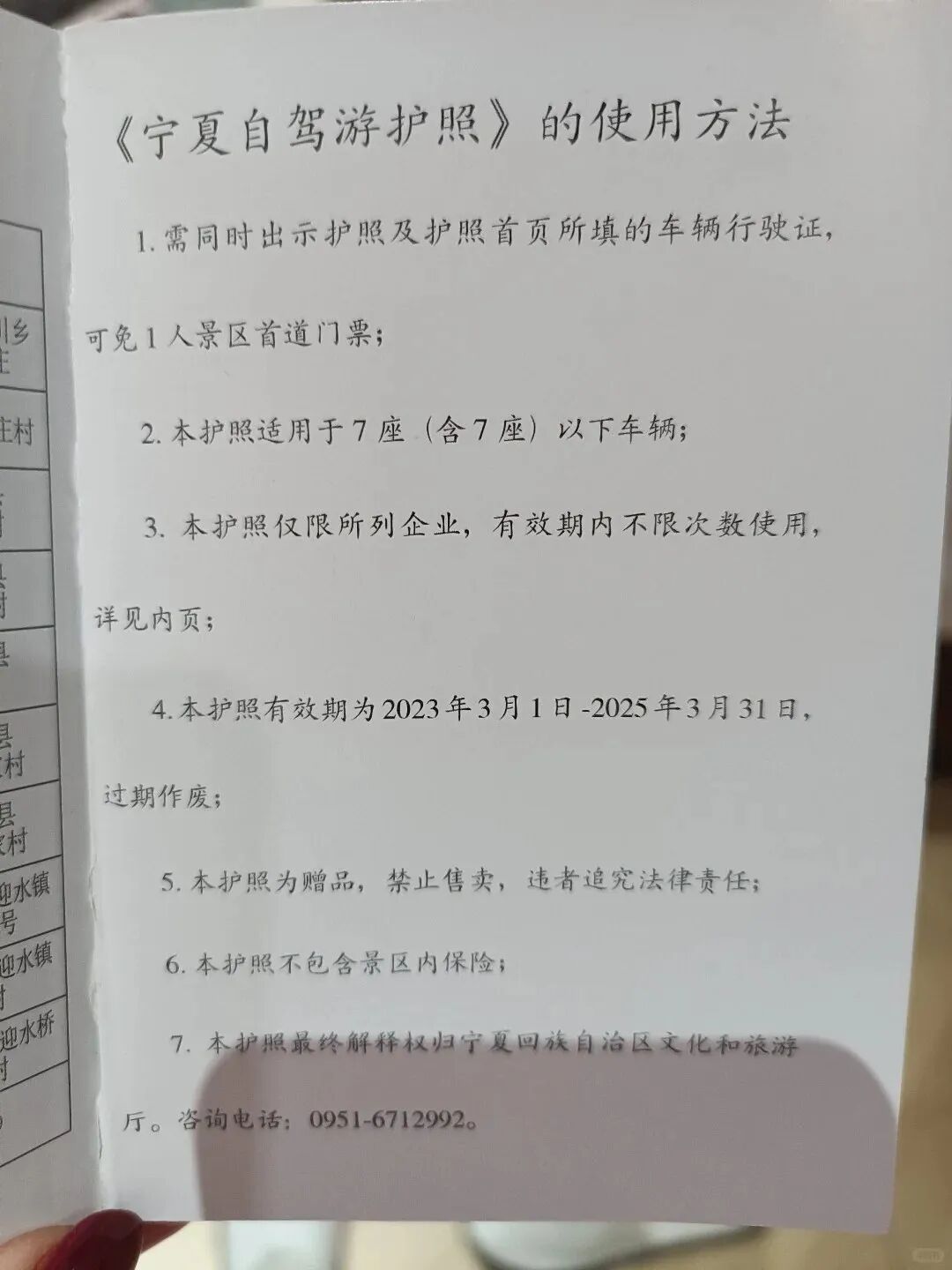 宁夏文旅推出航空护照和自驾游护照,航空护照被宣传比较多,真心不懂为啥自驾游护照全网竟然没有攻略??明明自驾游的游客也不少!听我的!自驾的小伙伴抵达后带上身份证,直接导航去“宁夏文化和旅游厅” 上601室领取自驾游护照,每辆车只能领1本!去景区使用时会被要求出示行驶证,免票人不需要和行驶证是同一个人,如果景区不知道,直接打文旅厅电话让文旅厅去沟通就可以!有部分景区感觉是不知道这个政策?还是培训不到位咋滴,总之就是:不用费心!让工作人员打电话给文旅厅沟通!