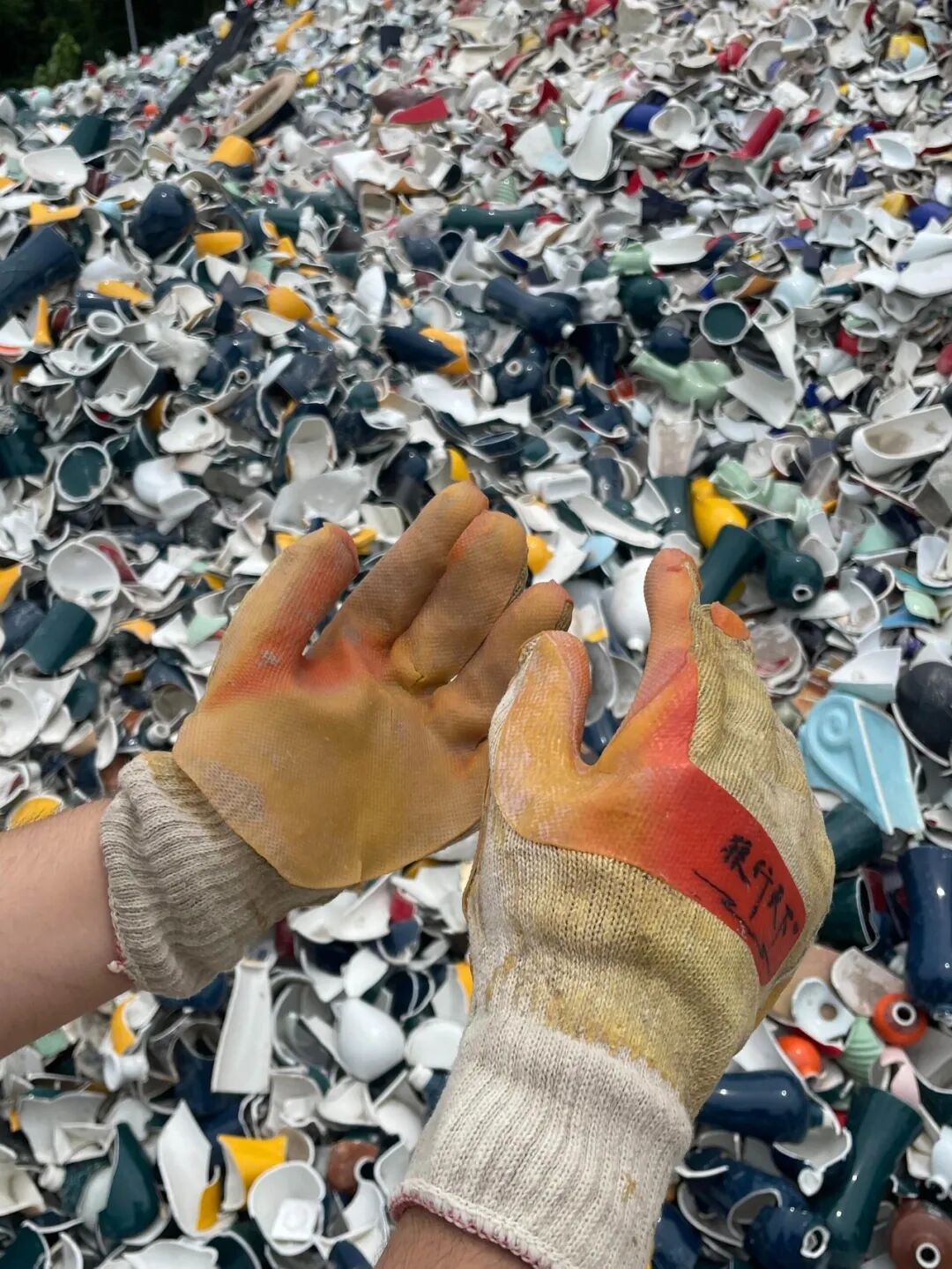如果是开车自驾肯定最好的,我装了满满一后备箱!另外一定要戴厚手套、穿厚鞋底的鞋子。捡垃圾的地方基本铺满碎陶瓷片,你需要在里面扒拉出比较完整的,如果不注意很容易划伤手,而且你可能需要踩上去才能扒拉到自己想要的!最后记得多带点大袋子吧!没准真的运气很好能捡回来很多!