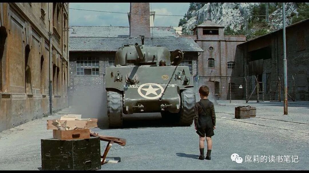 忽然,一辆真的坦克车隆隆地开到乔舒亚面前,上面下来一个美军士兵,将他抱上坦克。