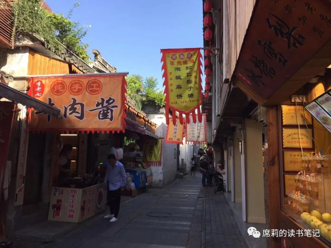 在古镇山塘街上,既有人间烟火气,也有皇贾的贵气,整体风貌保护良好,产业有活力,人气很旺。