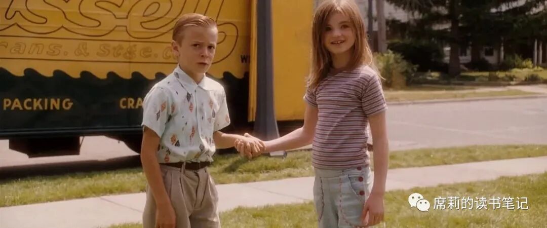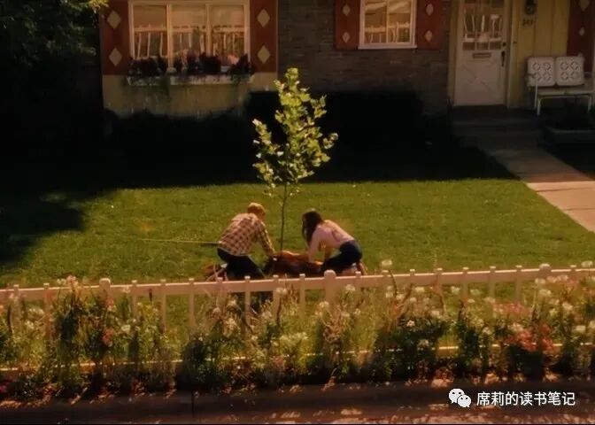 女孩朱莉对男孩布莱斯两次怦然心动,第一次是因为他的眼睛,第二次是因为他种树的行为,说明这种心动是从空洞的外形转变为精神上的吸引。