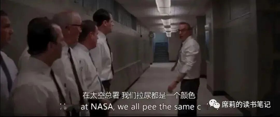 哈里森撕掉了咖啡壶上的标签,轮起锤子敲掉了厕所上的“有色人种专用”标志,转身对大家说:“在NASA,我们都拉一样颜色的屎。”