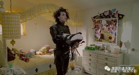 爱德华甚至可以看作是蒂姆·波顿的化身:奇异的外表、诗性的灵魂、独特的认知方式,表现他的孤独和难以与别人沟通的心境。