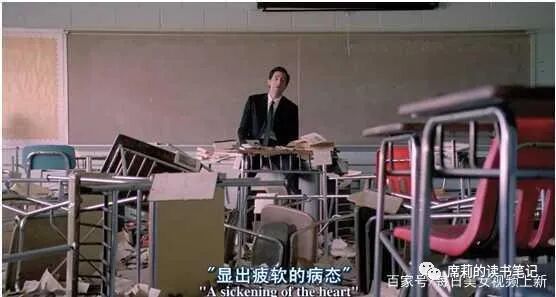 面对一片狼藉的教室,亨利独自念出那篇诗:我的灵魂失语了,我的心在冷却,下沉,显出疲软的病态。
