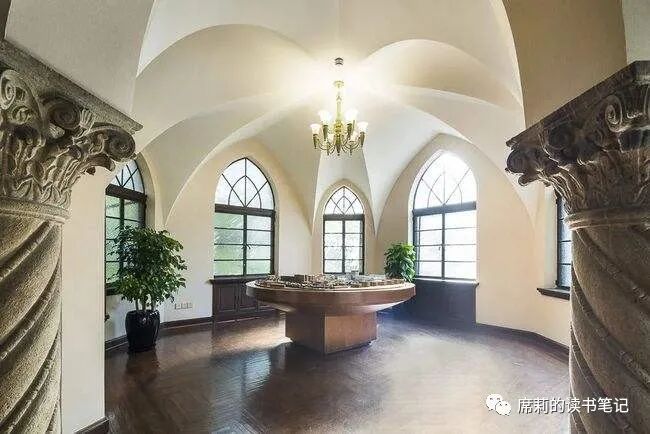 室内门套、窗套形式多变,运用各式拱劵,壁炉顶上的烟囱似意大利文艺复兴时期的砌法。