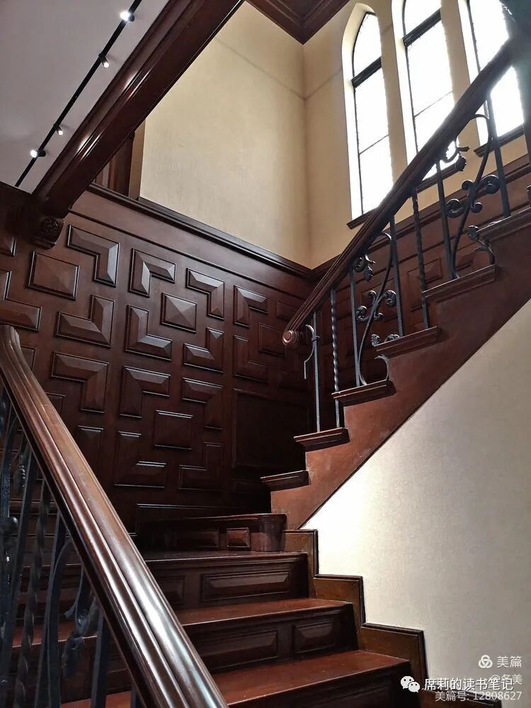 木楼梯制作精细,卧室、客厅、书房地板均采用进口柚木小条铺成席纹。平台和阳台均很宽敞,铸铁镂空栏杆轻巧美观。