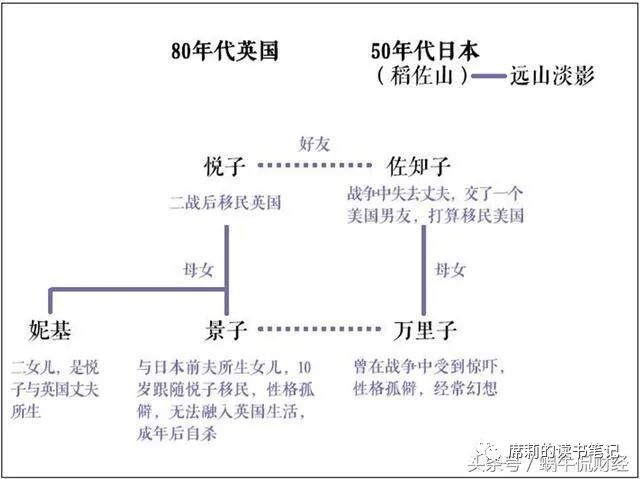 当读者看到悦子最后的回忆不经意间与佐知子的生活重叠时,才恍然大悟,原来悦子和佐知子是同一个人,而万里子就是当年的景子。