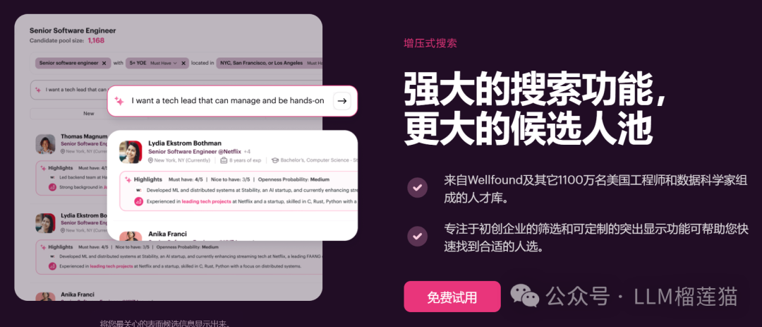 AI模型就能自动在上千万工程师里面快速筛选需要的人才,同时了解顶尖人才的需求,包括期望薪资和个人动机等形成匹配。