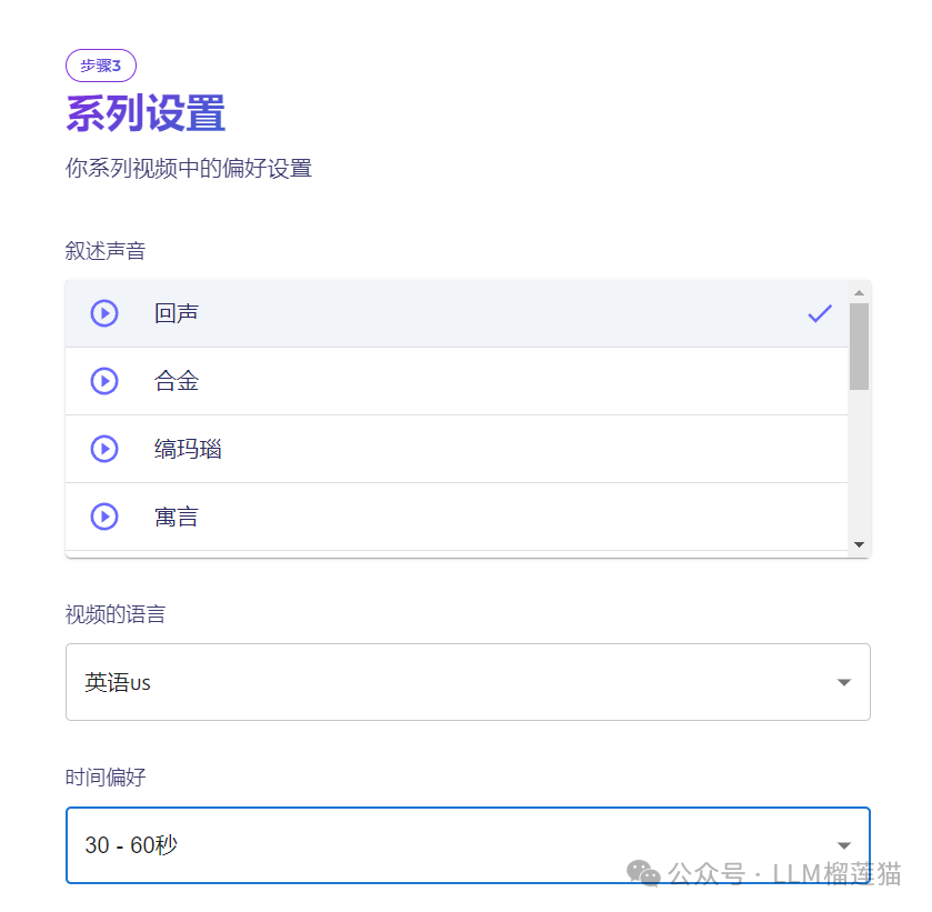 设置视频的配音、语音和长度: