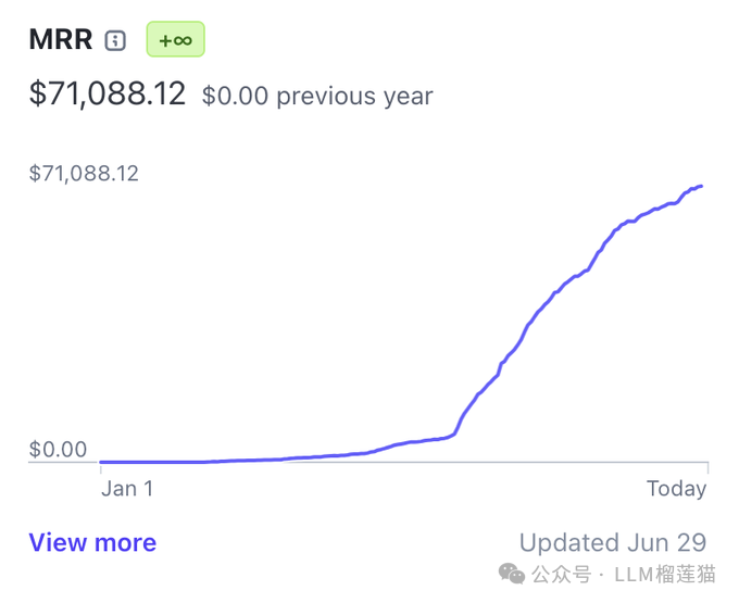 其中Autoshorts.ai从今年1月发布半年时间MRR做到了一个月70k美金,而且上涨的趋势还在继续(每个月都在涨10k)