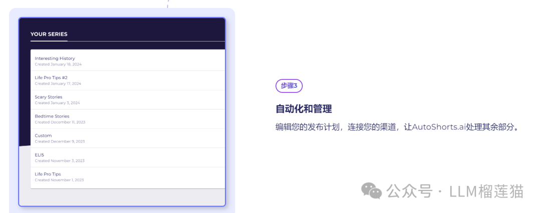 用户可以创建不同主题的系列关联自己的短视频账号在每一天的不同时刻发布不同的主题。