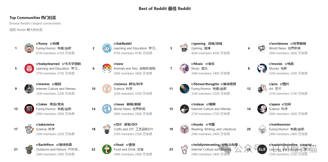 Reddit的月活跃用户数超过5.5亿,每日发布的帖子数量达到数百万条,评论数量更是多达数千万条,拥有超过5200万个独立社区,覆盖全行业。