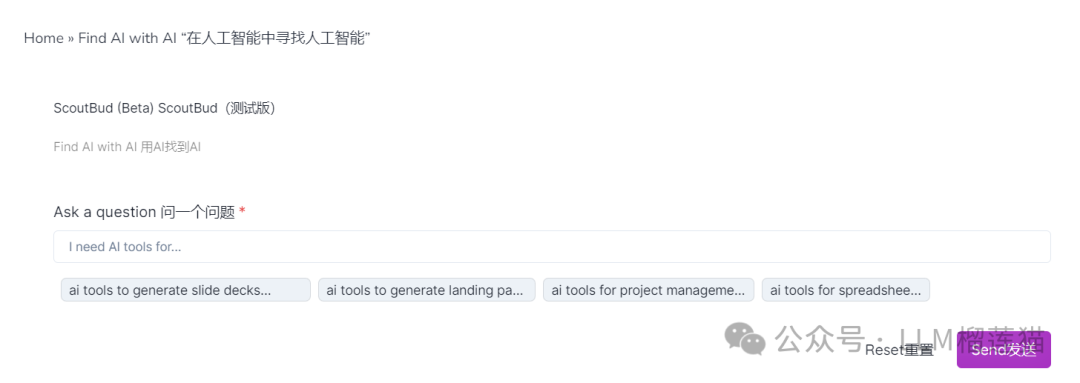 只需描述使用场景,ScoutBud在最新AI工具数据库里面根据需求找到最合适的工具。