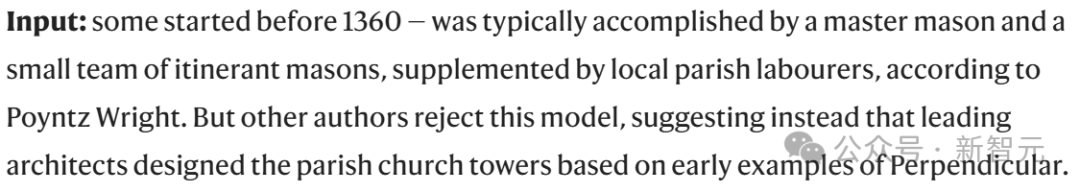 输入的提示如下所示,这是关于设计14世纪教堂塔楼主题的文本: