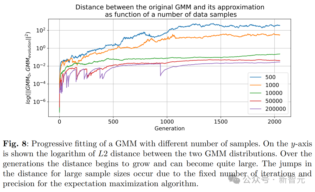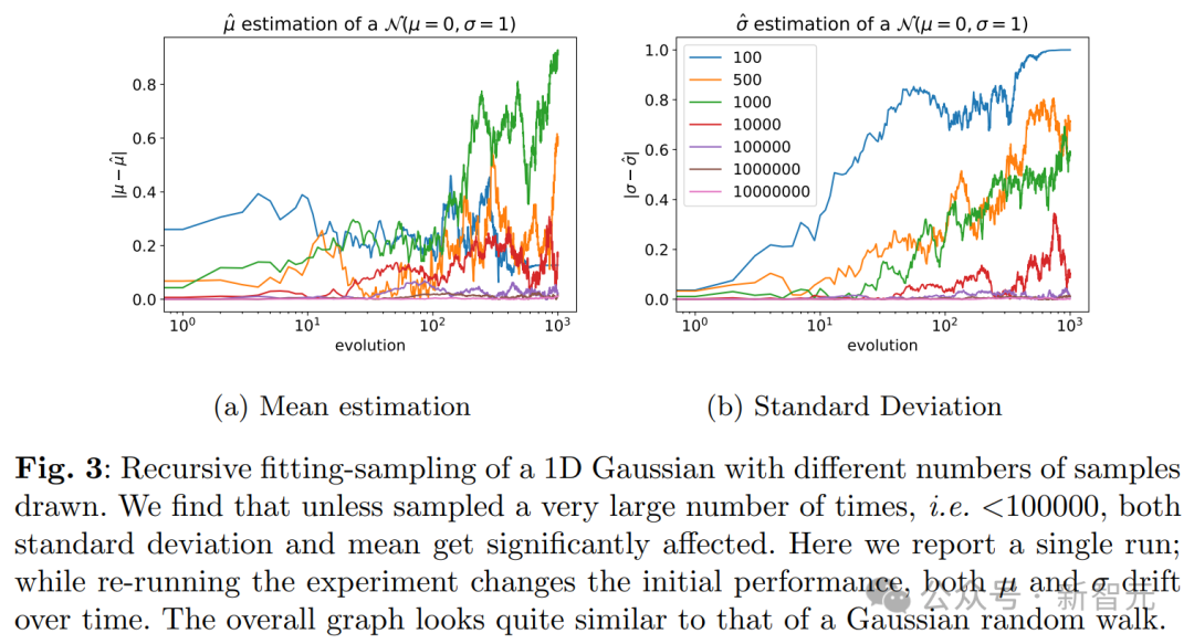 在这种情况下,每一代的数据都是通过上一代的均值和方差的无偏估计来近似的。高斯模型崩溃