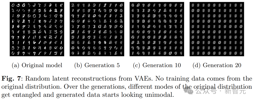 在所有基于前几代生成数据进行递归训练的生成模型,这种现象都是普遍存在的。