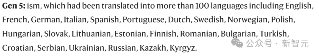 接下来,到了第五代模型,输出的结果完全是胡言乱语了。