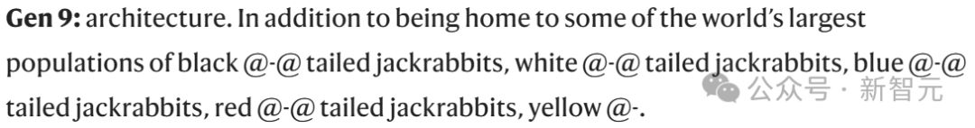 再到第9代,奇怪的@-@符号又出现了,而且还输出了更加无关的内容——tailed jackrabbits。