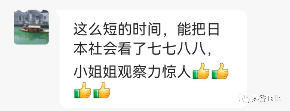 也有对我表示认可,认可我对日本的洞察力😅,我发表的相信是很多初到日本的中国人的共同感受,只是她们没有公开表达出来而已。