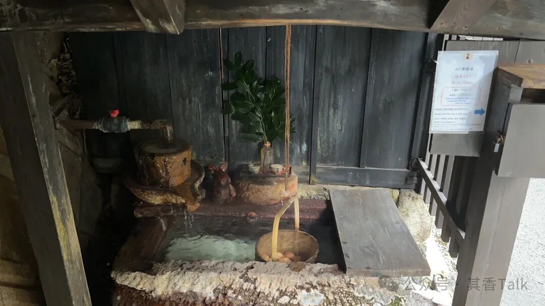 走着走着被村头温泉源泉头里面的温泉鸡蛋吸引了。