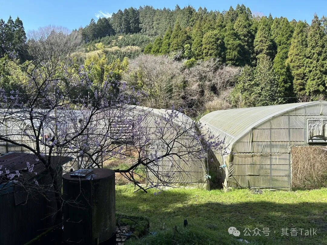 沿着山路,断断续续能看到在田间工作的日本人,路边停着辆车,田里是工作机器,在这个农业还算发达的国家,大部分的种植都在篷里。