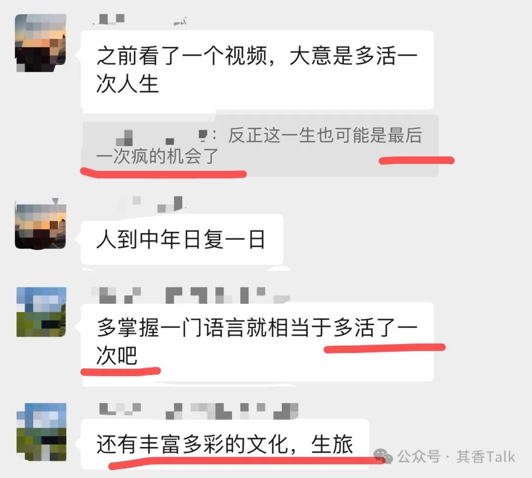 这些中年人,都曾是大家眼里的学霸,成功人士,人都中年依旧有重新开始的勇气,如同群里的网友们说:人生可能仅此一次疯狂的机会,就多活一次吧。
