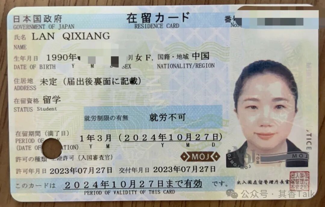 留学生在留卡是在入境的时候海关给的,把材料给工作人员,他会问你留学要不要兼职,一定要回答:要兼职。