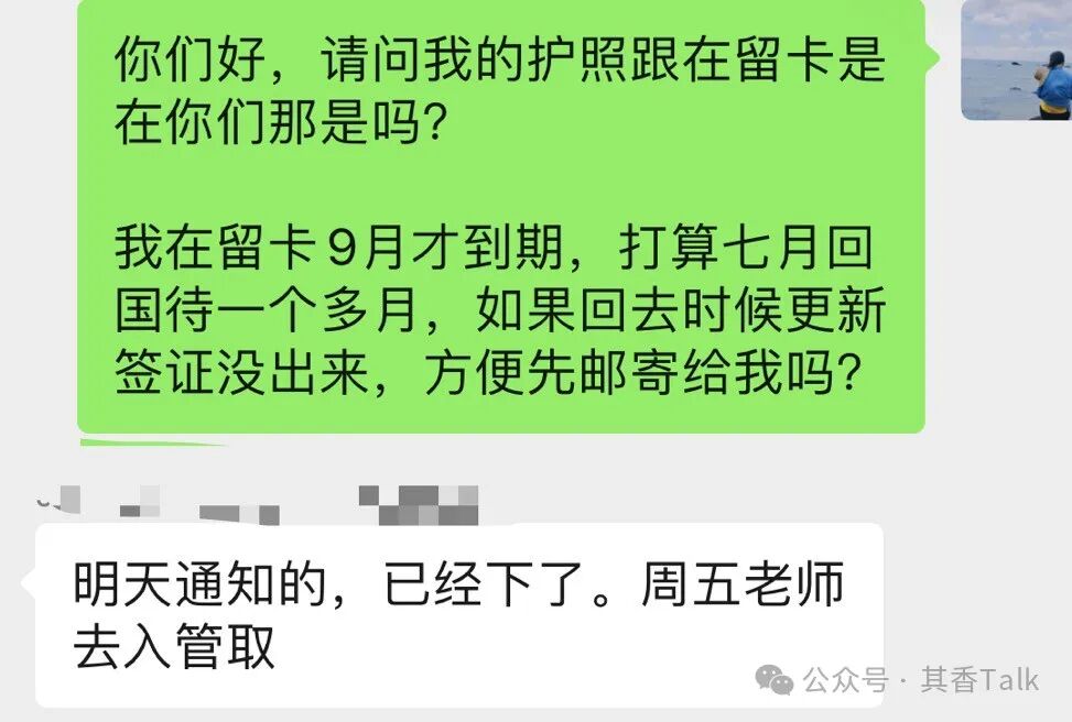 就这样情况下,发信息本想叫他们拿旧的在留卡,没想到,同一时间他们也收到下签通知书了。