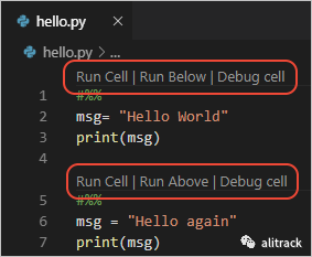 是的,就是#%%这三个字符,让 VS Code 把看似普通的 Python 文件(当然可以当成普通 Python 文件直接执行)处理成 Jupyter Notebook。