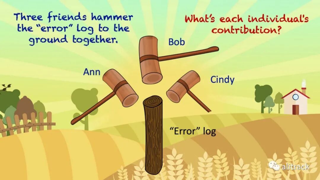 我将木头日志称为错误日志有一个特殊的原因:它是机器学习上下文中的损失函数。误差是实际值与预测值之间的差异。锤子是攻击错误日志的预测器。我们如何衡量锤子(预测器)的贡献?Shapley 值!