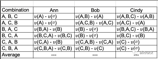 公理 2:对称性(Symmetry)。所有玩家都有公平的机会加入游戏。这就是为什么上面的表 A 列出了所有玩家的排列。