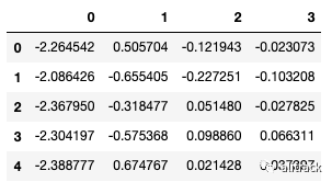 from sklearn.decomposition import PCApca = PCA()x_pca = pca.fit_transform(x)x_pca = pd.DataFrame(x_pca)x_pca.head()