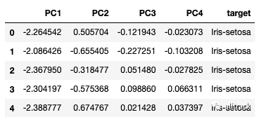 请注意,此 Iris 数据集附带目标变量。在 PCA 中,您只能在没有目标 Y 变量的情况下转换 x 变量。