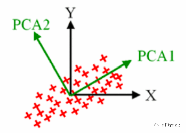 图(a)显示了 PCA 的直觉:它“旋转”轴更好地与您的数据对齐。第一个主成分将捕获数据中的大部分方差,然后后跟第二个,第三等。结果是,新数据将具有更少的维度。