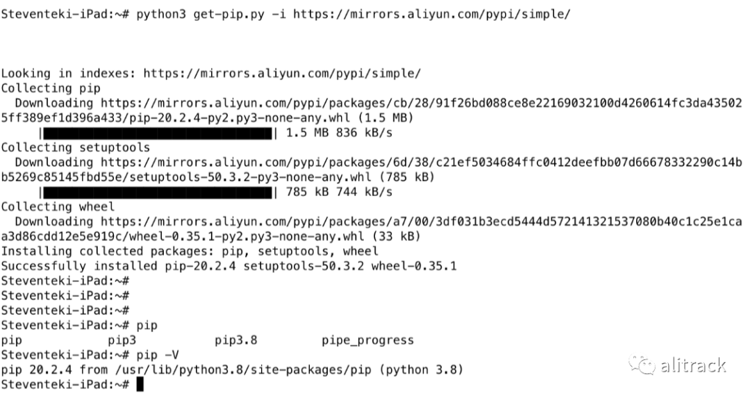 $ python3 get-pip.py -i https://mirrors.aliyun.com/pypi/simple/