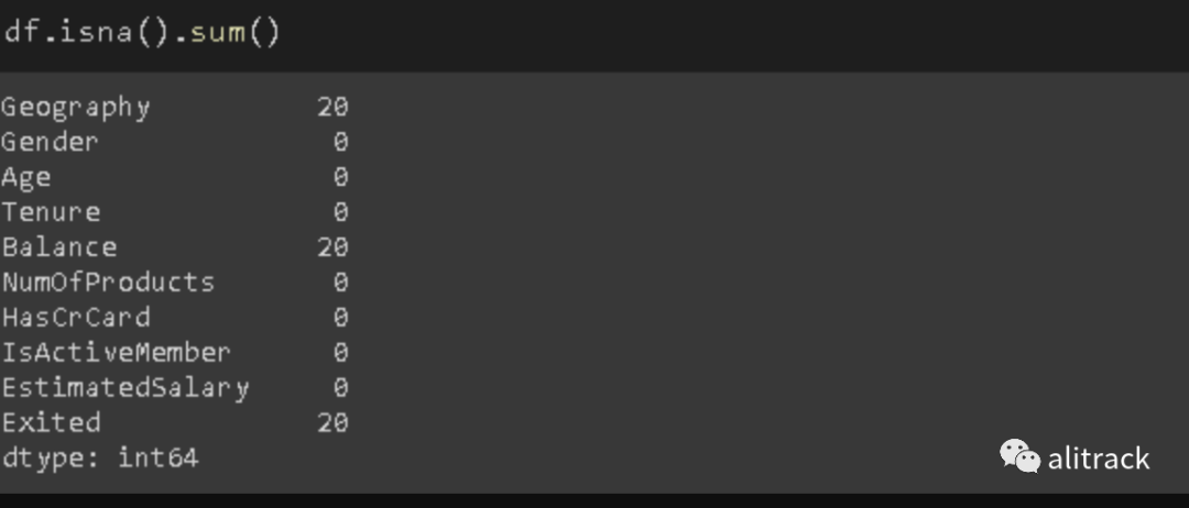 处理缺失值的另一种方法是删除它们。“已退出”列中仍缺少值。以下代码将删除缺少任何值的行。